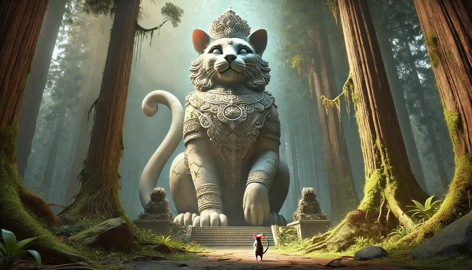 Ayla was terrified and helpless. Suddenly she recalled that there was a place in the land of mice, where she went sometimes with her family to visit. There was a huge statue of Big Mouse, and she was told that Big Mouse answered questions and helped in needs. So she ran to the statue and started talking and asking. But the statue remained cold and silent.