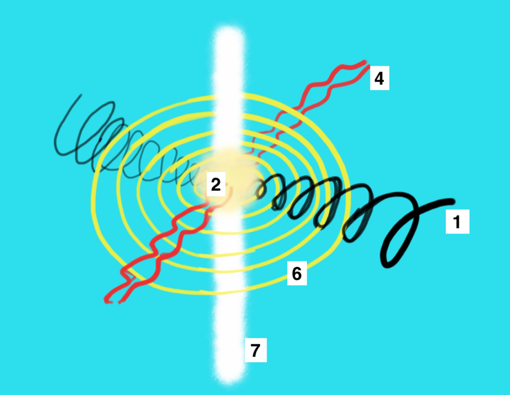 - The spirals create compression of the field between them, and when the compression is adequate, a hole opens in the “middle point” and then a tunnel forms that becomes filled with very neutral light.